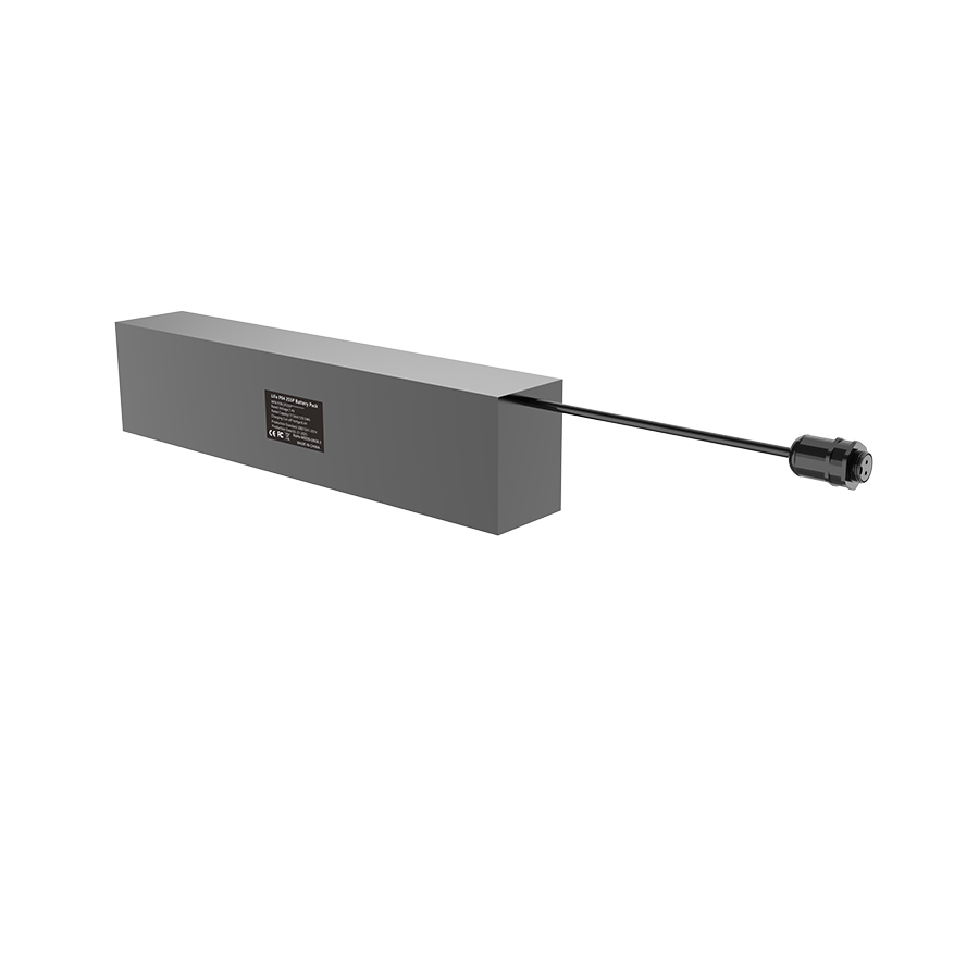LP4S6P10A10AF004 is a 4S6P Lithium-Ion Phosphate (LiFePo4) rechargeable Battery Pack with Battery Management System integrated, nominal voltage at 12.8V, rated capacity at 24Ah/307.2Wh, with 30cm long 16AWG wires terminated with AOHUA (AH-M20-1502FFZ01112 ) connector for charge and discharge, charge & discharge from the same connector, with Shrink Wrap.